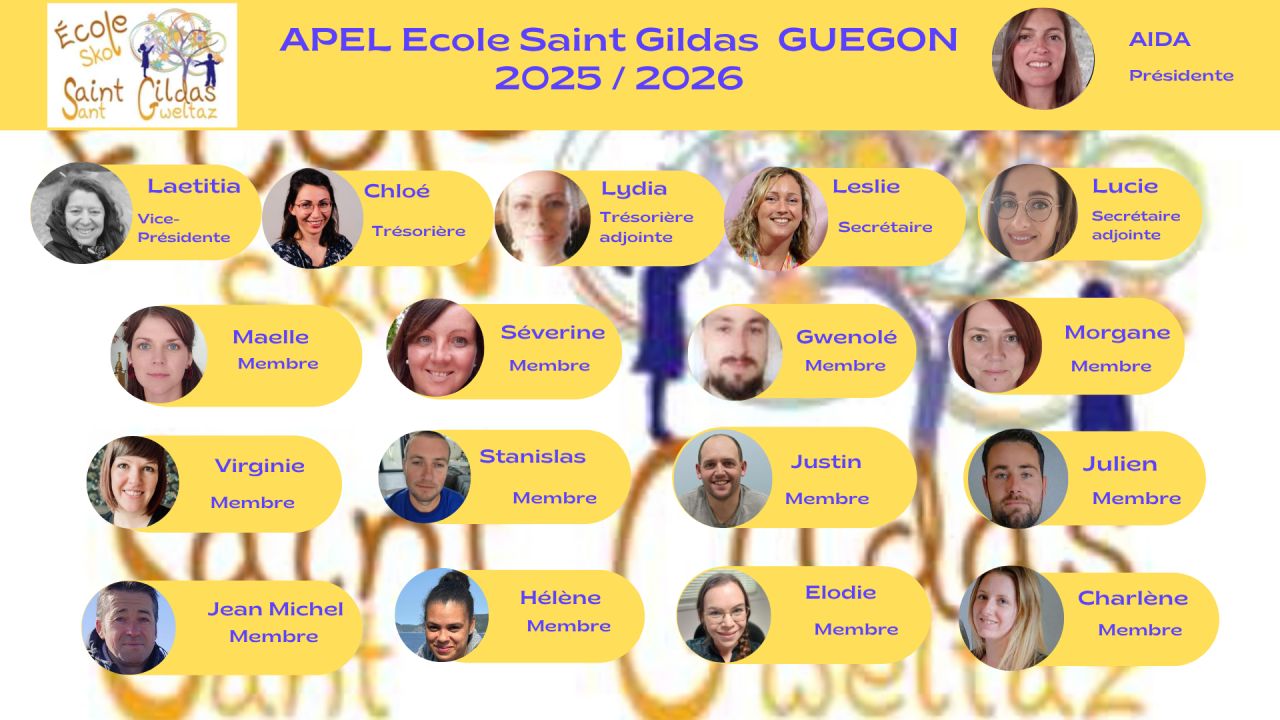 L'APEL: c'est l'association des parents d'élèves. Ils sont en charge de l'accueil des nouvelles familles, de l'organisation des manifestations. Grâce à leurs actions, les élèves de notre école bénéficient de transports pour différentes propositions (cinéma, piscine, spectacle...) mais aussi de livres et de matériel pédagogique.