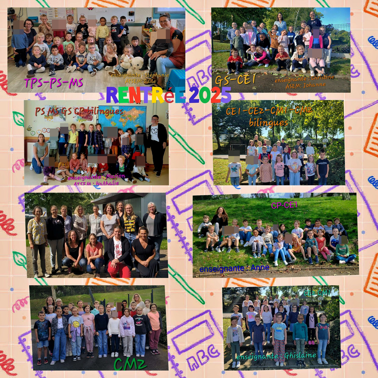 Lundi 1er septembre, 162 élèves et leurs 8 enseignantes ont pris le chemin de l'école. Pour les accompagner, 3 asem (aides maternelles) et 1 AESH .